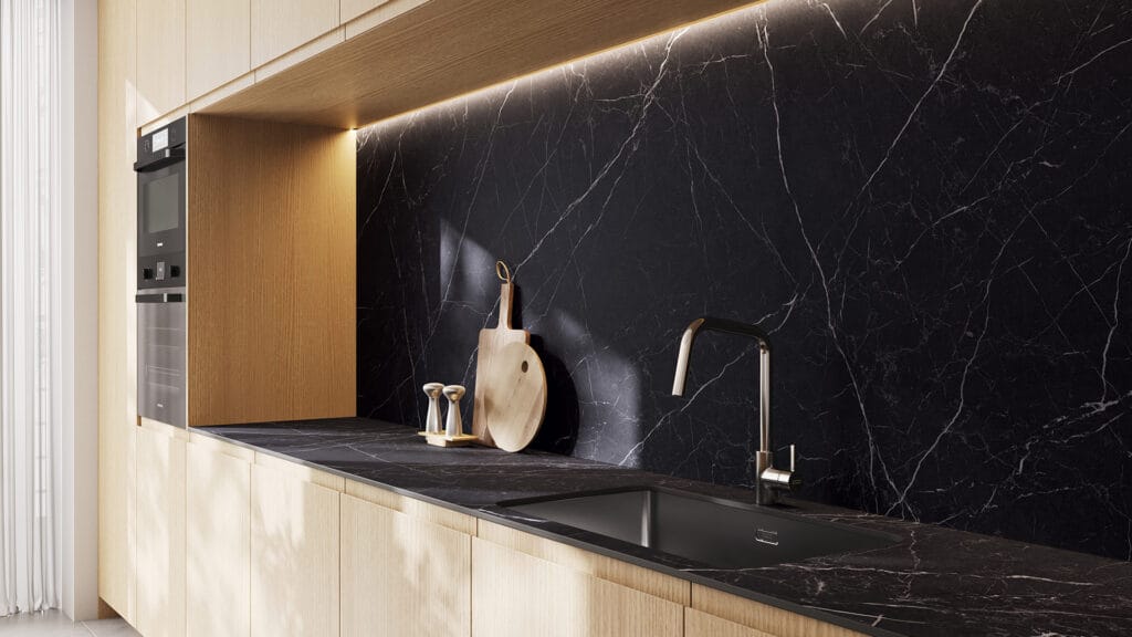 Bold, striking and a complete game-changer! With its midnight-black base and lightning-like streaks and striations in chalk-white, Smokestone is a powerful statement for any interior. Its irregular calcite streaks and layers of earthy impurities create a surface that exudes luxury and timeless elegance. Ultra Rough finish.
