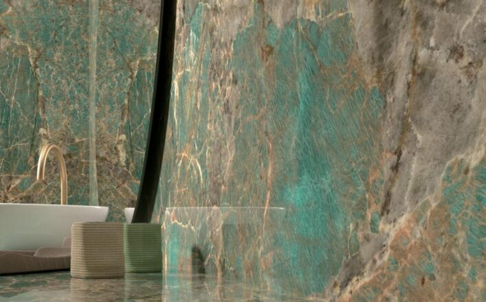 Artistic and modern, AC Stone Amazon Green has a stunning emerald green hue base, with copper brown webbed patterning that makes this piece a one of a kind surface. AC Stone Amazon Green mimics ocean water hues, plant life and exudes earthy tones, adding unique flare, design and artistry to any kitchen, entertainment or commercial space.
