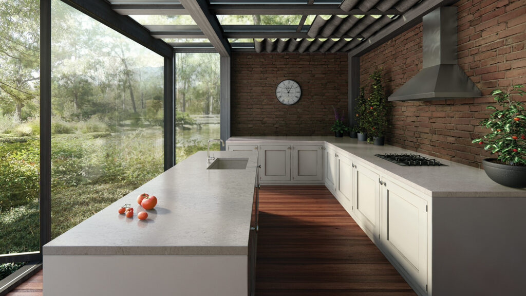 Another unique design inspired by light granites, also combining delicate vein features.
