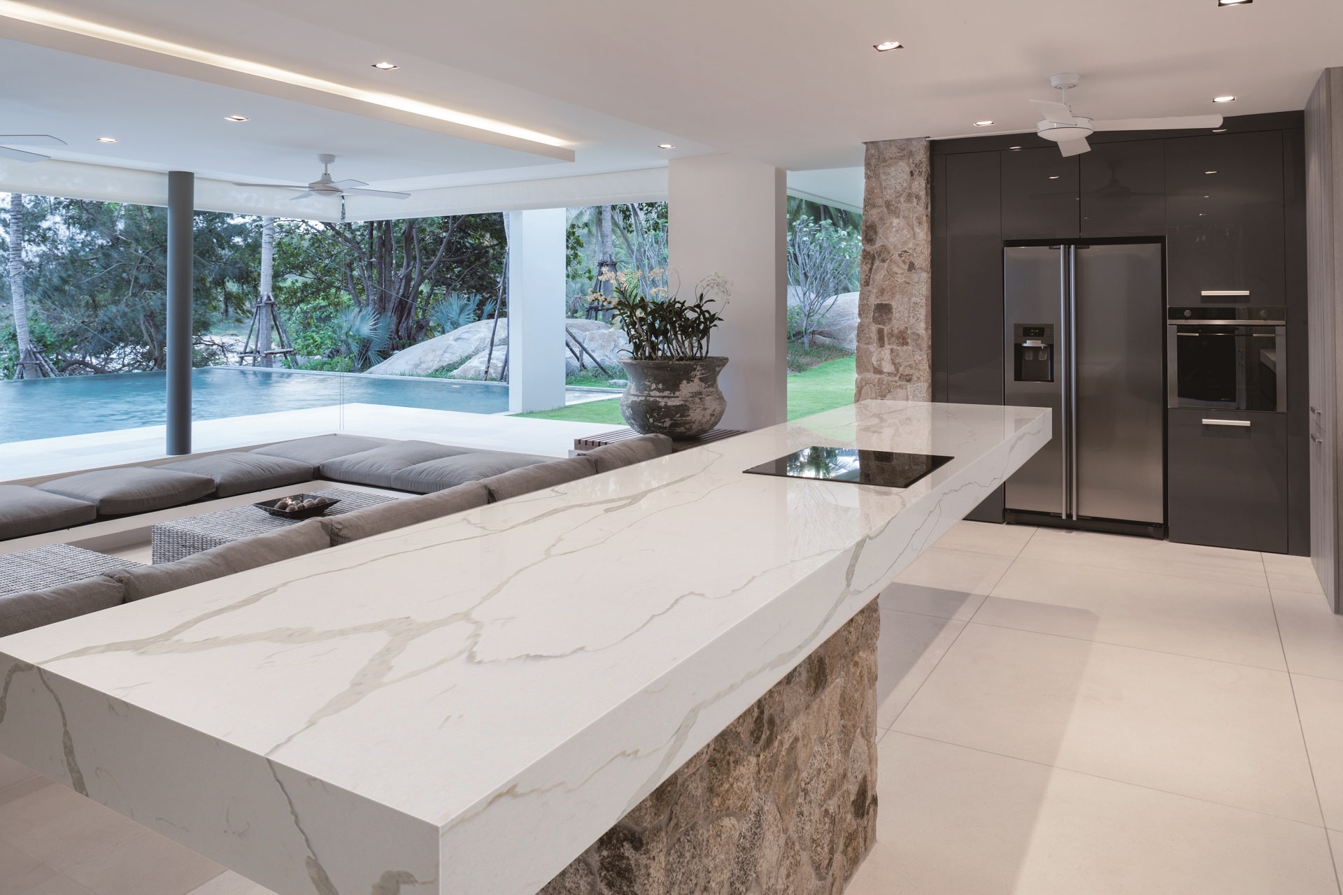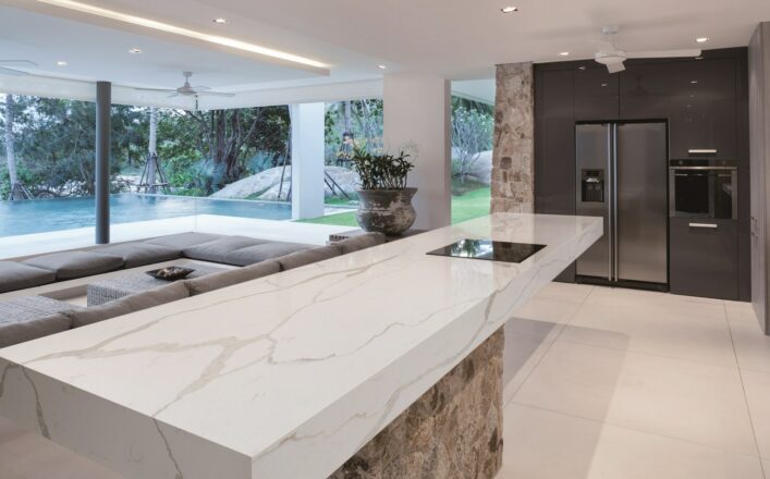 Calacatta Luna showcases a soft white base with delicate yet defined grey veining. Its balanced and refined look makes it ideal for creating timeless, luxurious interiors in both modern and classic settings.