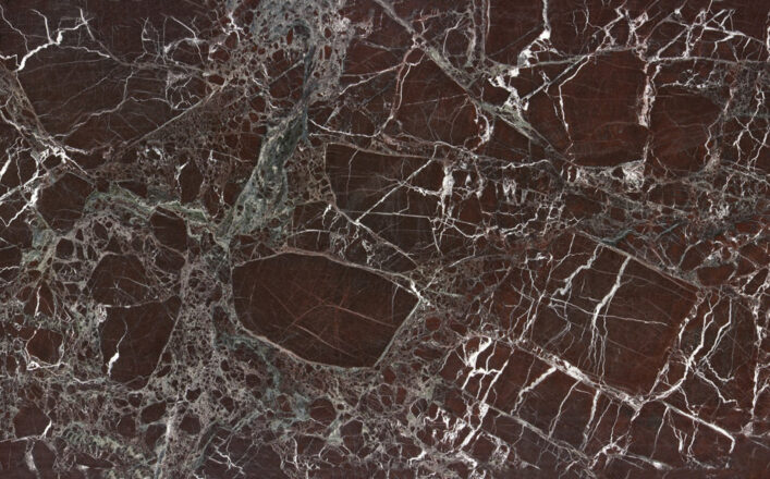 Deep burgundy marble veined with rich tones of forest green and white, offering a palette that feels both regal and dramatic. Unapologetically bold, Rosso Lepanto is pure luxury, with an old-money edge.
