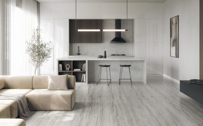 The traditional elegance of Spanish Crema Marfil marble with a smooth finish, creamy backdrop, and subtle hints of gray. A perfect colour for minimalist designs with a warm touch, suitable for use in all types of projects, from interiors to floors and façades.