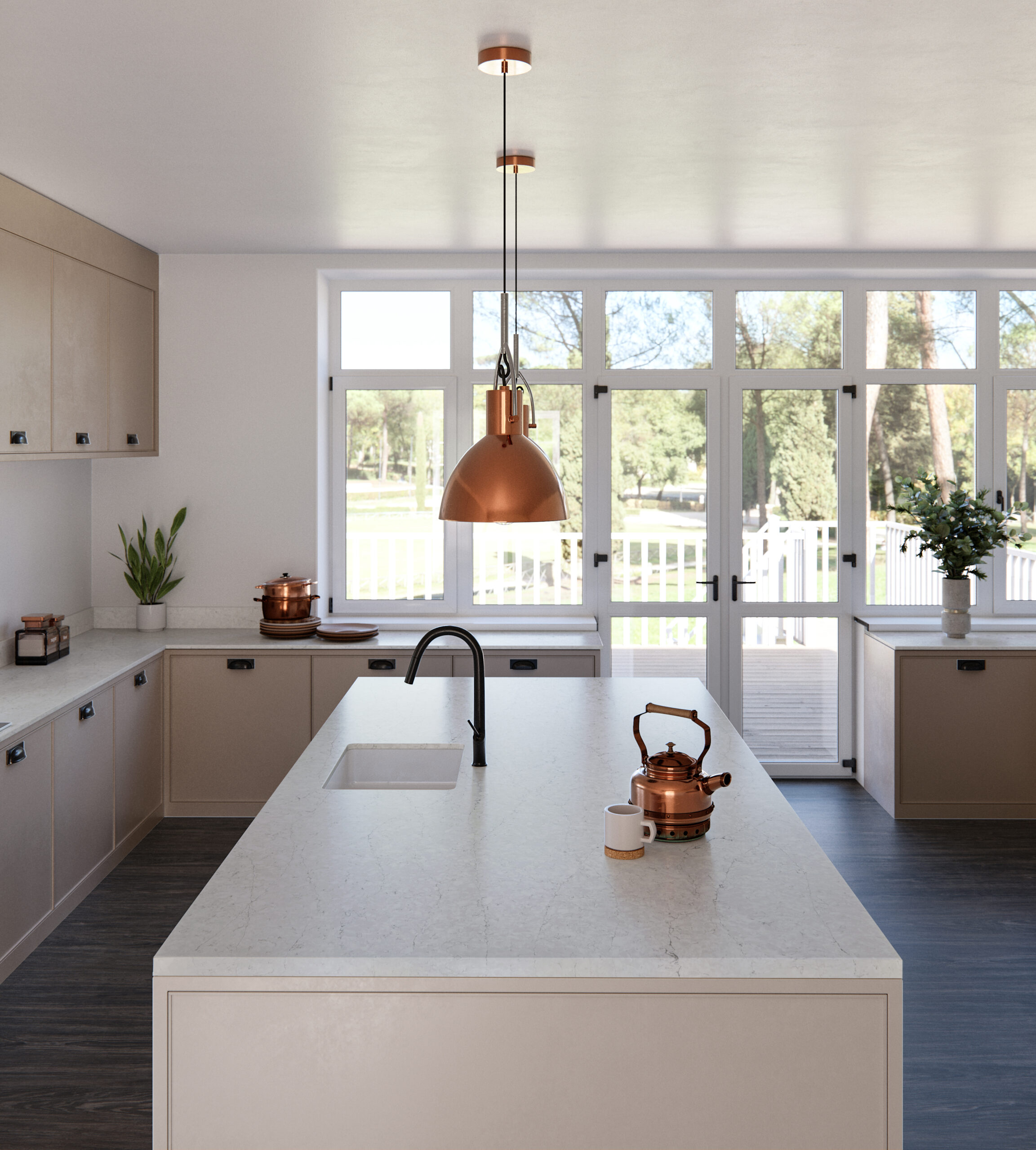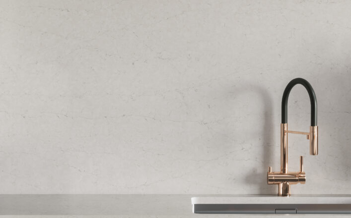 Creating a vision of white limestone and covered with subtle grey veins, it creates an impressive traditional effect. This decor combines perfectly with both classic and rustics designs.