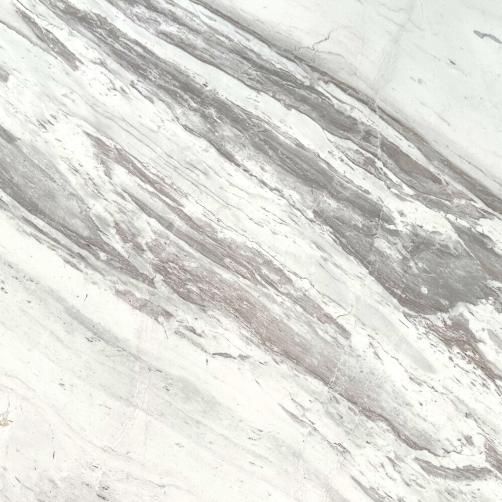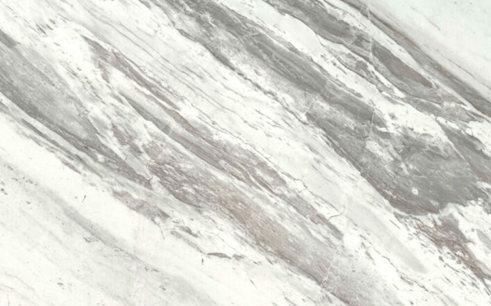 Volakas marble from Greece showcases a striking pattern, with sweeping grey veins that weave across its white base in bold, organic lines. These veins vary in intensity, creating depth and contrast, while hints of earthy brown add warmth and complexity to the design. The intricate, layered patterns give each slab a unique, flowing character that draws the eye and brings a sense of movement to any setting.